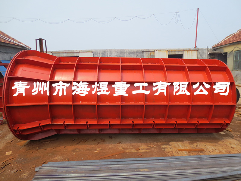 1000×3000水泥制管模具為定型鋼模,筒體、環(huán)筋、縱筋、法蘭、跑圈各部位焊接工整,并在出廠前對模具各部位進行質(zhì)量檢查,不能有開焊、內(nèi)壁不光滑等現(xiàn)象;表面噴漆后在模具內(nèi)壁上涂刷廢機油,以防止模具內(nèi)壁在運輸過程中銹蝕。